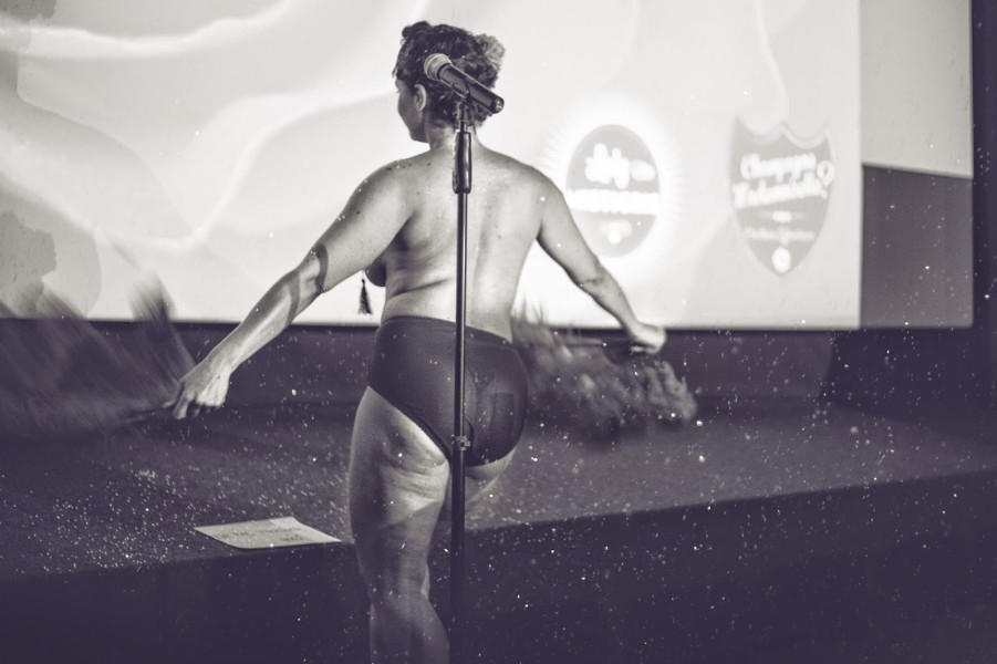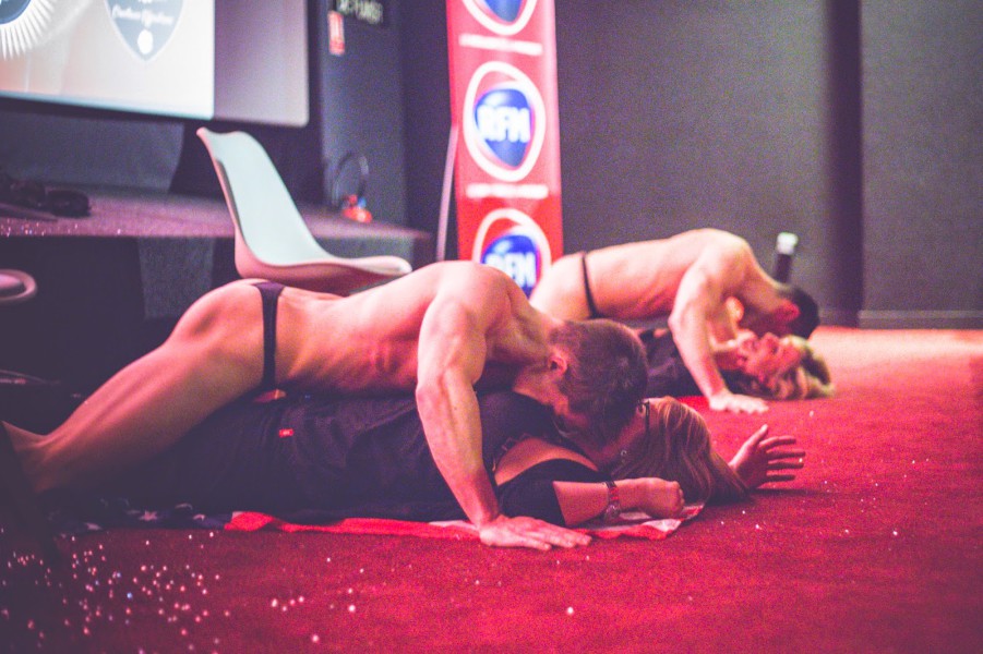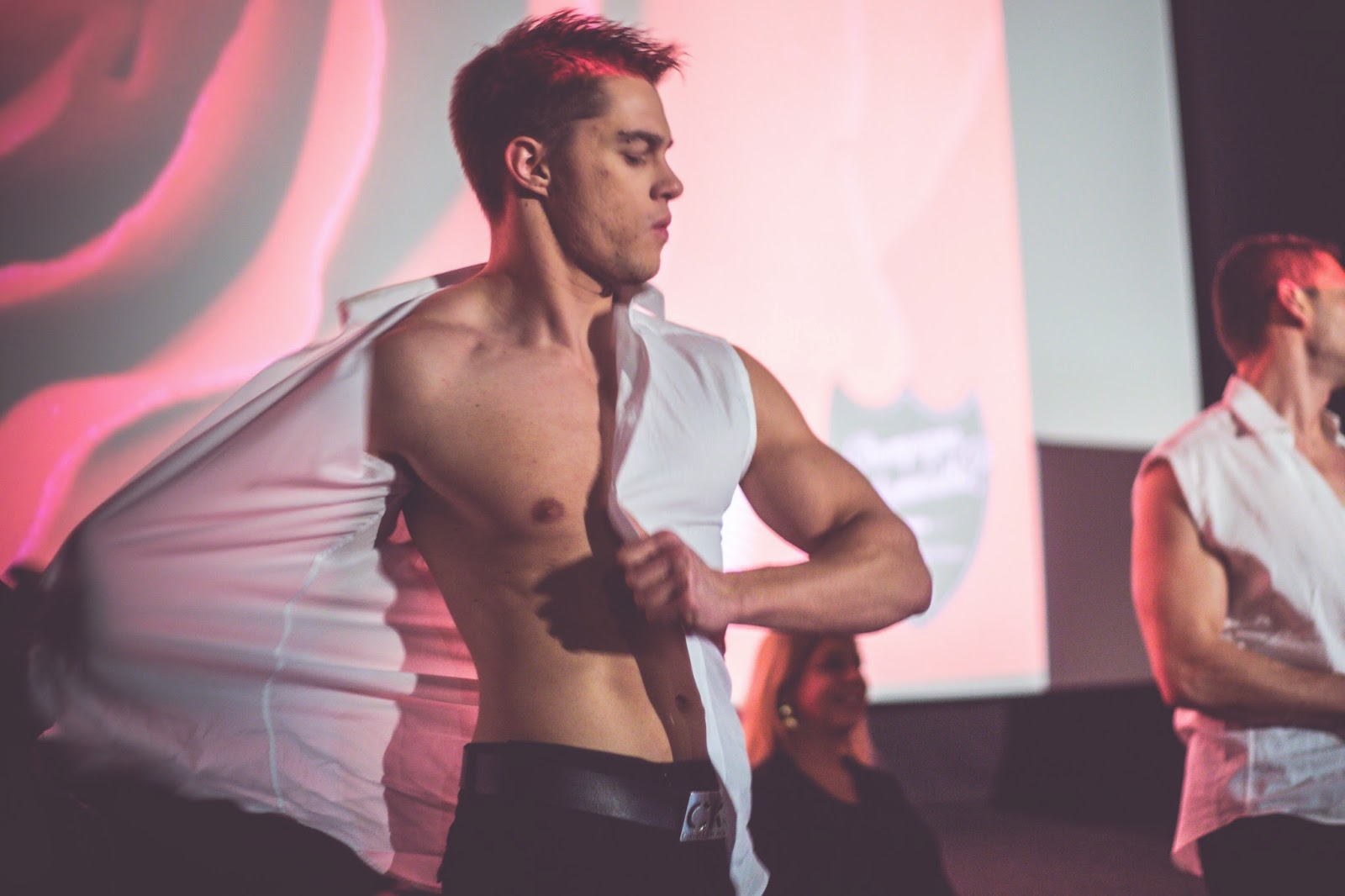 Dans la salle de cinéma, une fois tout le Monde installé, une chanson-effeuillage interprétée par Champagne Mademoiselle alias Morgan Spengler commence dans une lumière tamisée, et un show très très…chaud les marrons mettant en scène des chippendales, vient enchaîner la prestation de l’effeuilleuse, bref, de quoi nous mettre en haleine avant le lancement du film!