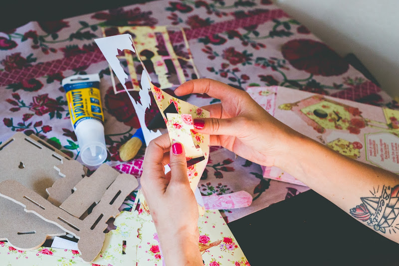 • Collez les décorations que vous aurez préalablement désassemblé,