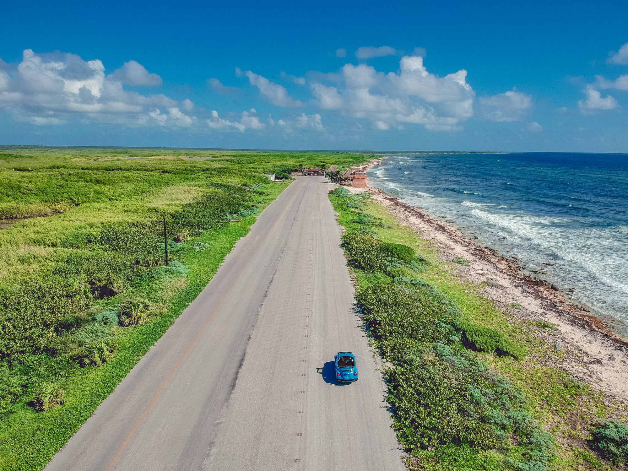 40 mn de traversée plus tard, nous voilà sur l’île de Cozumel. Cette petite ile, située en-dessous de Cancun dans le Yucatan a tenu toutes ses promesses : plages désertes ou le cul nu est admissible – ça change des 10 cm que t’as pour poser ta serviette à six four les plages – paysages dignes de pirate des caraïbes et eaux translucides, Au total, on sera restés 3 jours à se promener en coccinelle Vintage le long de la mer. Pour louer notre coccinelle, aucune difficulté : dès que tu sors du ferry, il y a des dizaines de petits stands te proposant plusieurs modèles de bagnole en location. Nous avons payé environ 30 €/ jour, ce qui est très peu cher, et avons dû rendre la voiture avec 150 pesos de plein (6,90 € environ).