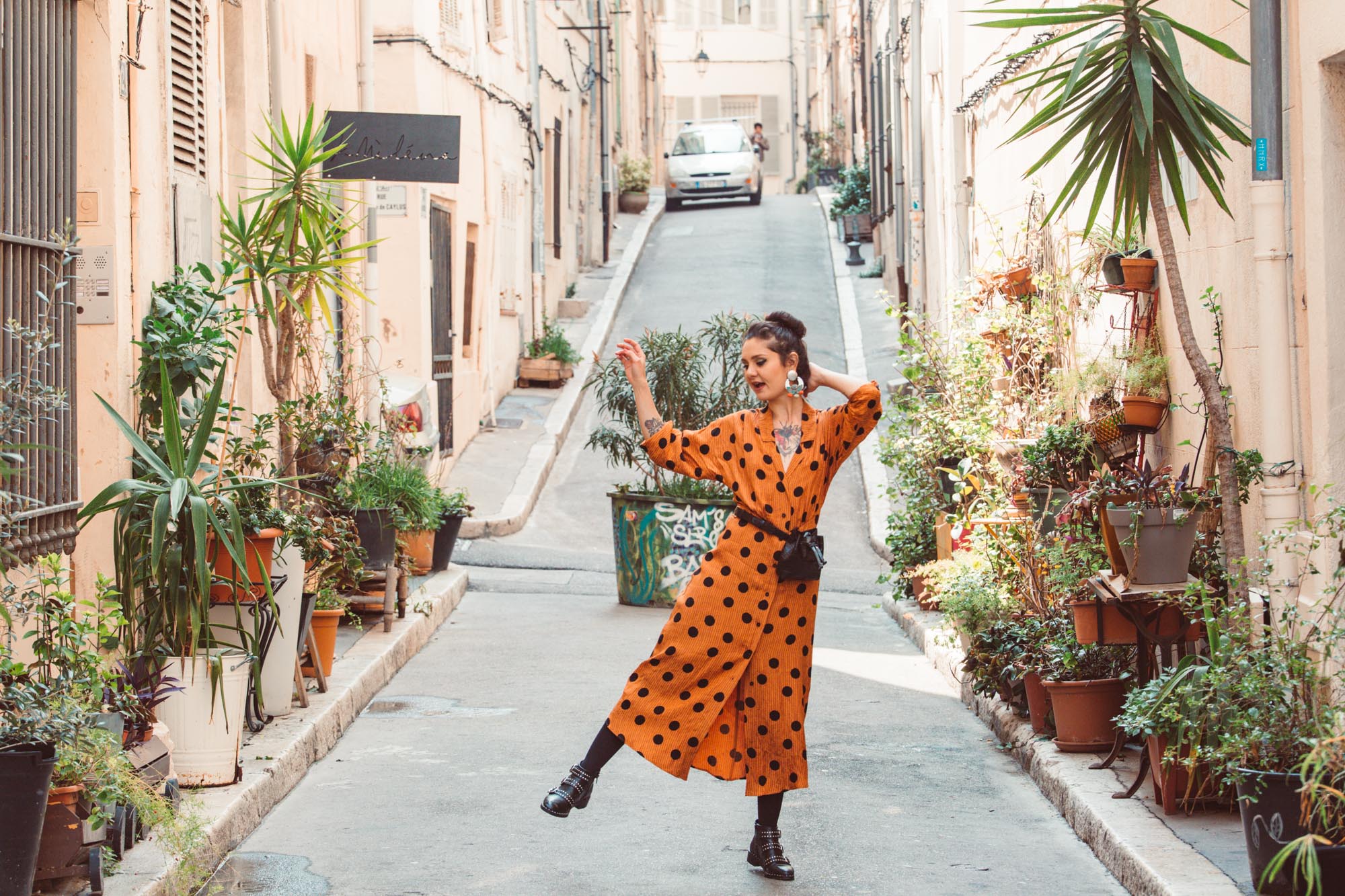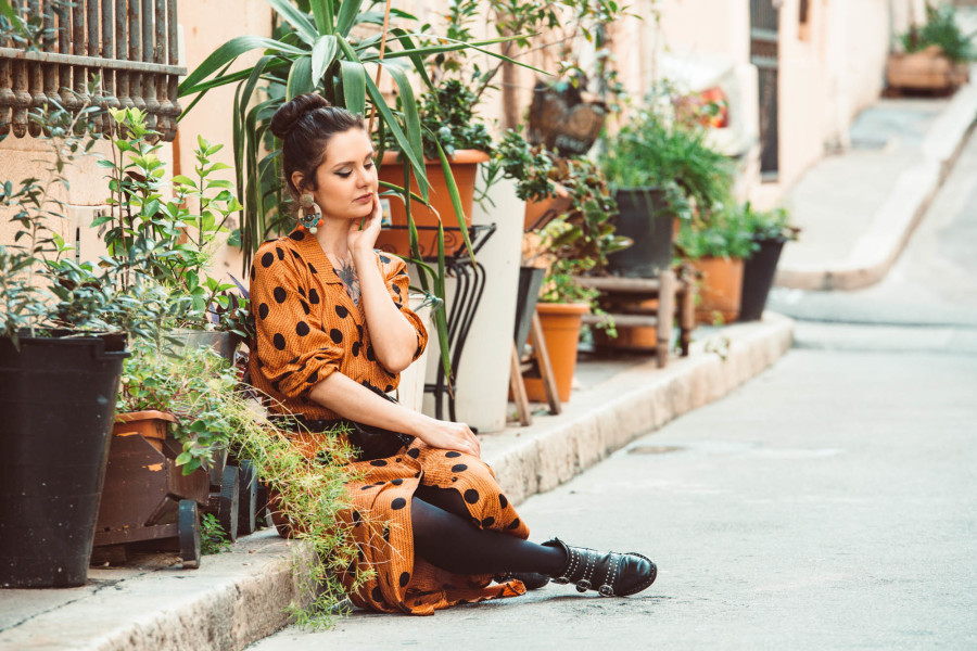 Une robe Mango à pois dans les rues de Marseille