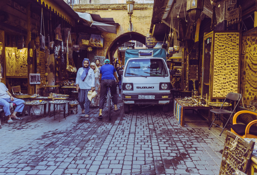 En gros, le premier jour où on est arrivés, passés le choc des gens qui vous appellent dans tous les sens sur la place principale, on essaie de vous guider vers des endroits complètement WTF. Un mec nous a dit par exemple que le jeudi était le seul jour de la semaine où des artisans des montagnes descendaient en ville vendre et montrer leur art… et quand le type nous a orientés vers une tannerie ou je ne sais quel truc cool à voir, on s’est retrouvés dans les mains d’un autre mec chelou qui nous fait zig-zaguer dans les ruelles, pour nous faire voir une tannerie ignoblissime et qui a finit par nous emmener dans des magasins…quand on a dit merci ciao, bizarrement, les gars étaient beaucoup moins sympas 😀